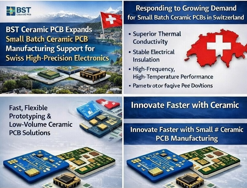 BST Ceramic PCB, a professional ceramic printed circuit board manufacturer, has announced the expansion of its small batch ceramic PCB manufacturing services for the Swiss market, addressing the growing demand for high-reliability, low-volume ceramic PCBs in medical, industrial, RF, and power electronics applications.